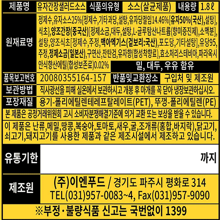 이엔푸드 유자간장샐러드소스(PET_드레싱 1.8Kg/EA)