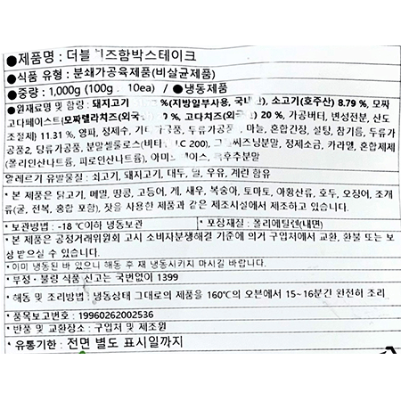 선진 더블치즈함박스테이크(100g*10입 1Kg/EA)