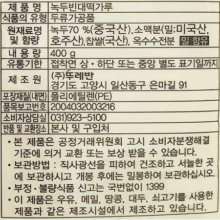 뚜레반 녹두빈대떡가루(400g/EA) 이미지