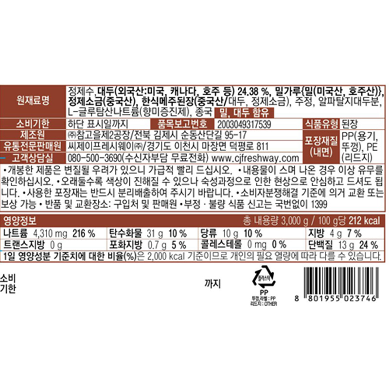 이츠웰 재래된장(3Kg/EA)