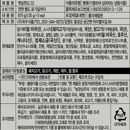 옥두식품 옛날핫도그2(135g*5개입 675g/EA) 이미지