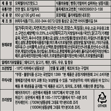 옥두식품 모짜렐라치즈핫도그(130g*5개입 650g/EA)