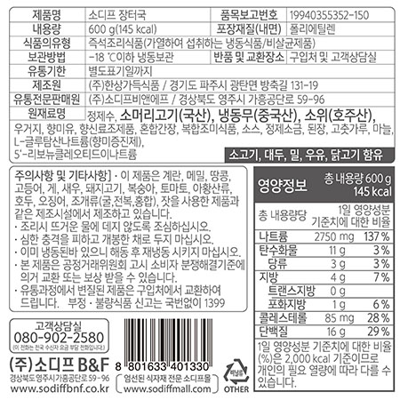 소디프 장터국밥(600g/EA)