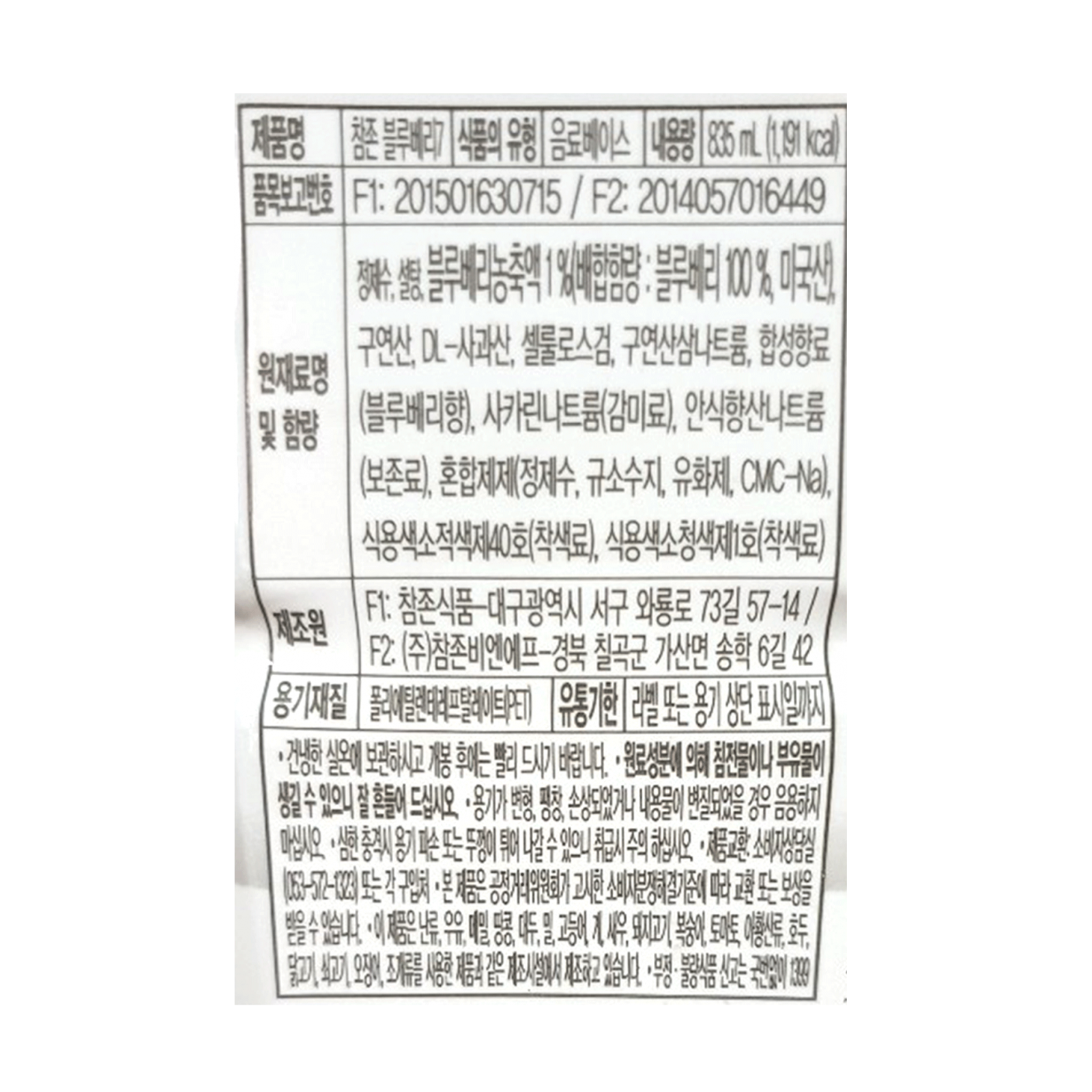 원재료명 및 함량