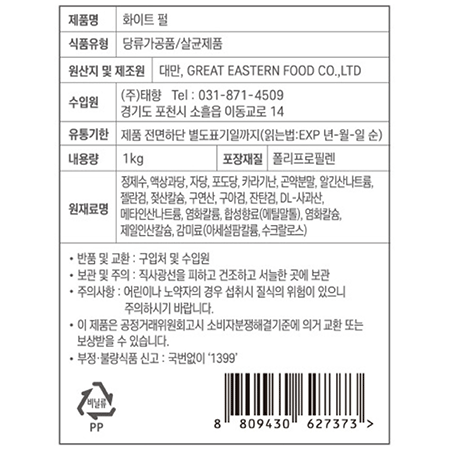 태향 화이트펄(1Kg/EA) 곤약펄 타피오카 버블티 음료 빙수 토핑