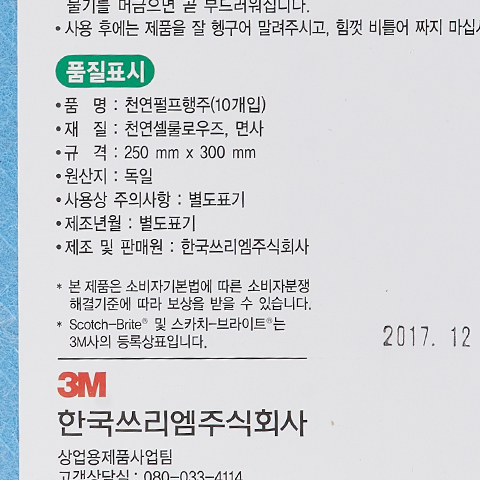 스카치브라이트 행주(천연펄프_파랑색_315*257mm_10입 EA)