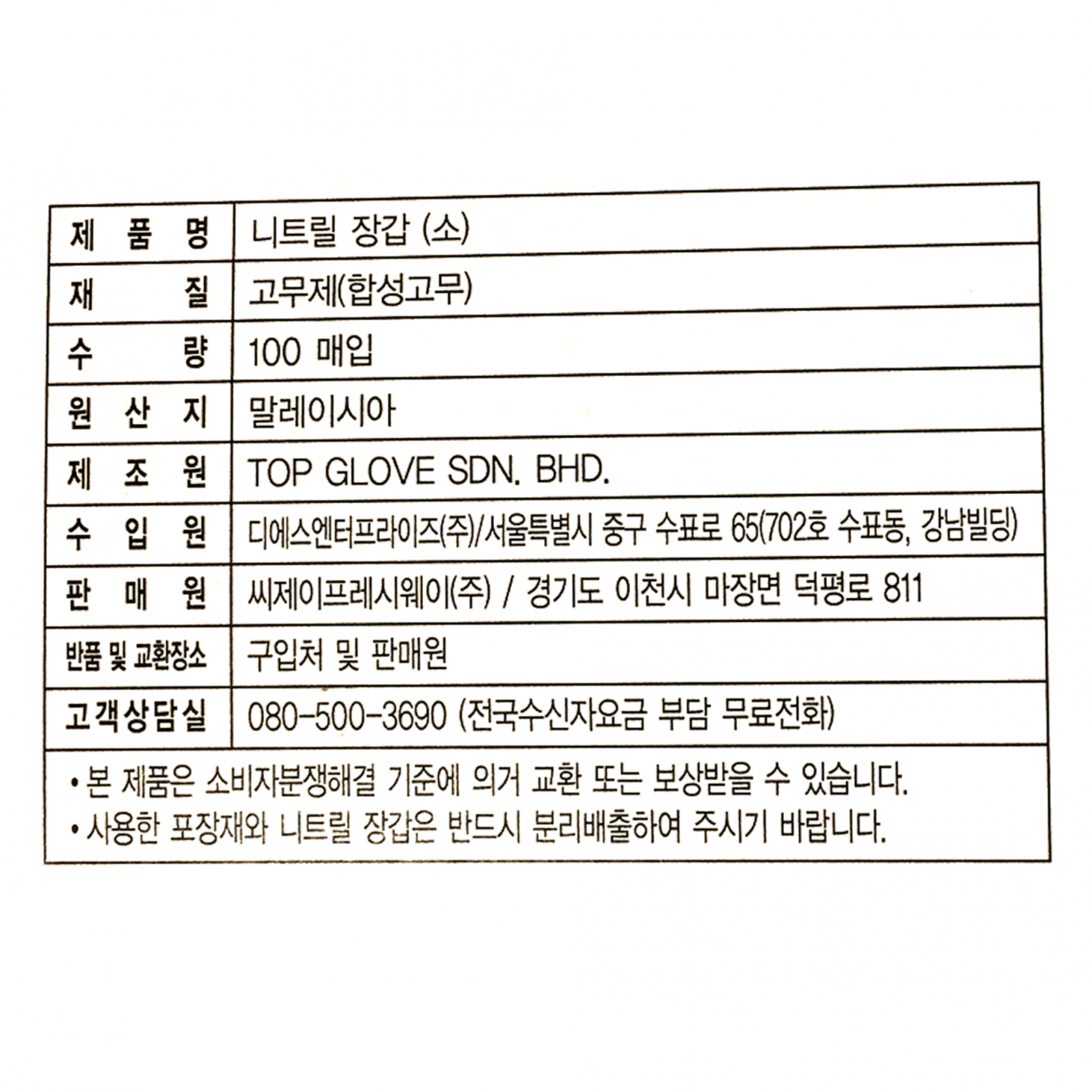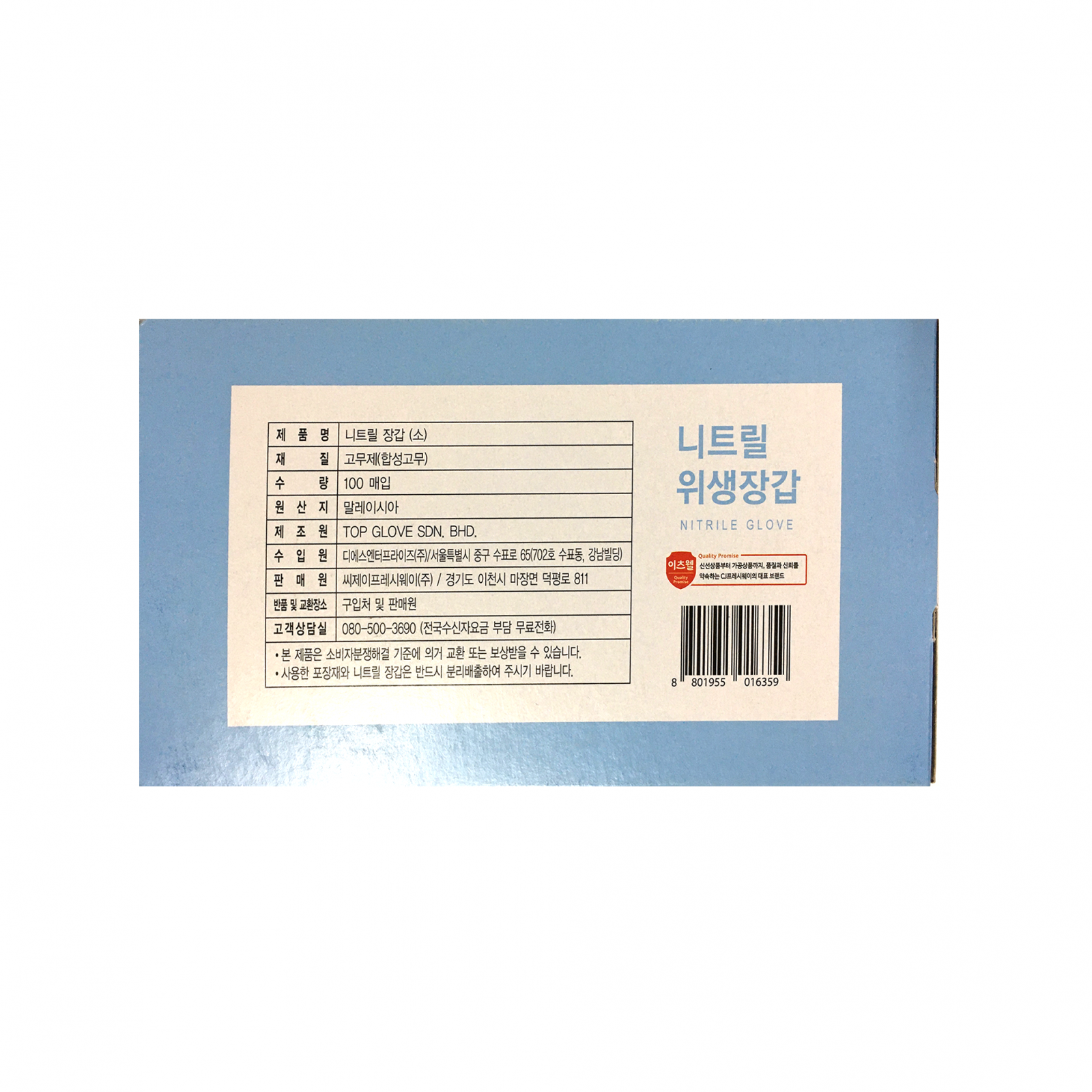 이츠웰 니트릴위생장갑(파란색_소_100입 EA) 이미지