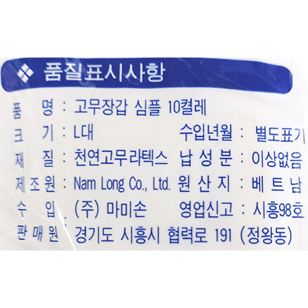 마미손 짧은고무장갑(아이보리_대L_10켤레 EA)