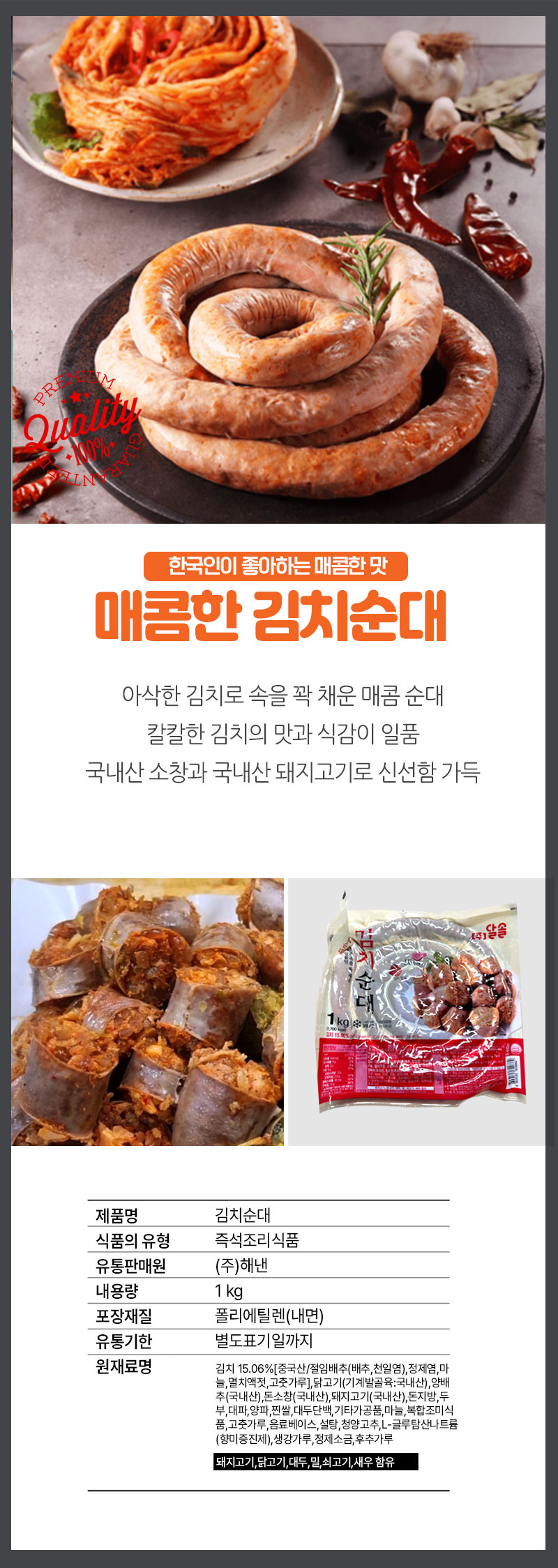 간단설명 : 쫄깃하고 매콤한 맛이 일품인 김치순대입니다.