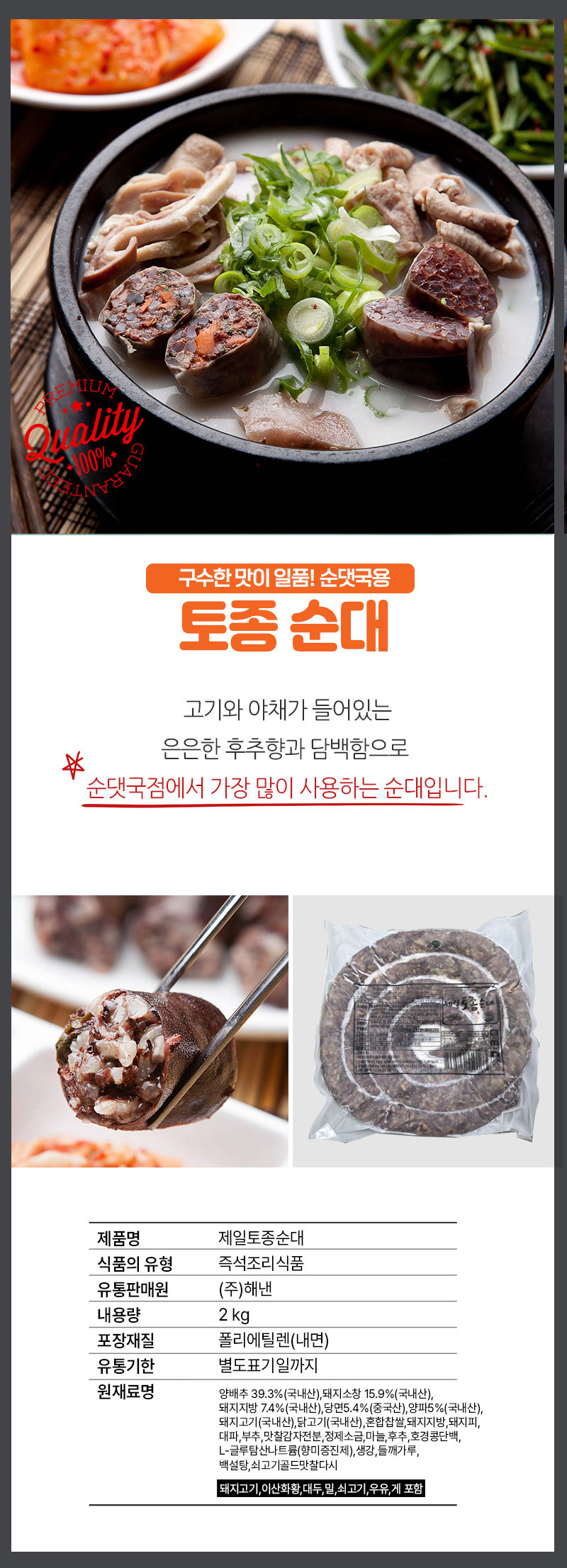 속이 꽉 차 있고 전통적인 순대맛을 높여주며 속이 풀어지지 않습니다.