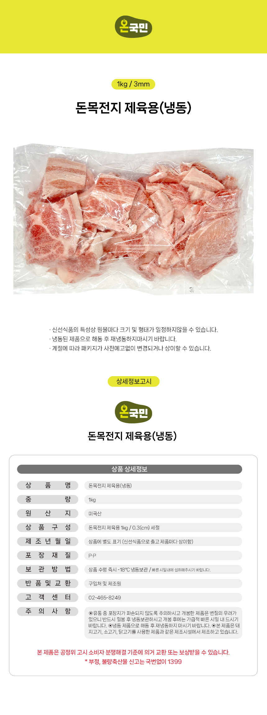 돈목전지 제육용 미국산 1kg 냉동 이미지