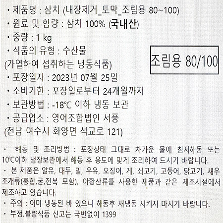 서풍 삼치(굿픽_내장제거_80~100g/토막 조림용 1Kg/EA)