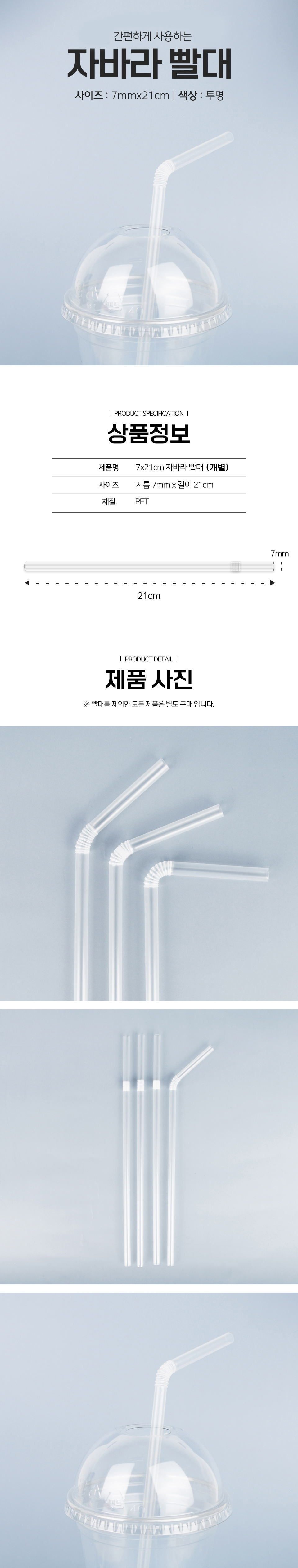 7mm x 21cm 투명 자바라 개별포장 빨대 10000개 이미지