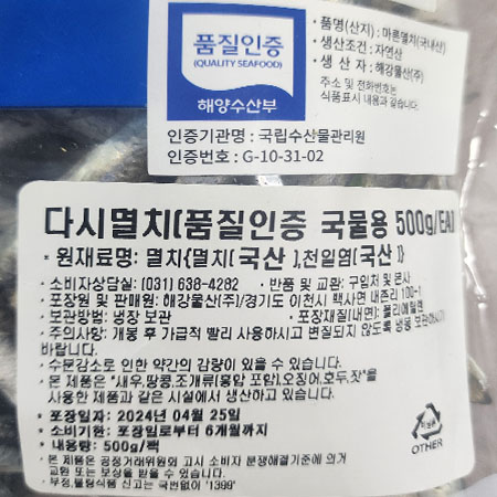 다시멸치(품질인증 국물용 500g/EA) 이미지