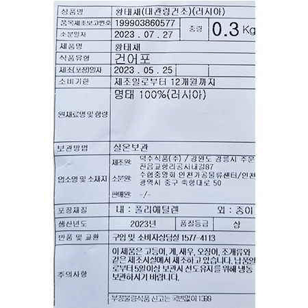수협어기여찬 황태채(대관령_건조 300g/EA) 이미지