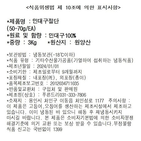 민대구(굿픽_내장제거_50~70g/토막 탕용 3Kg/BOX)