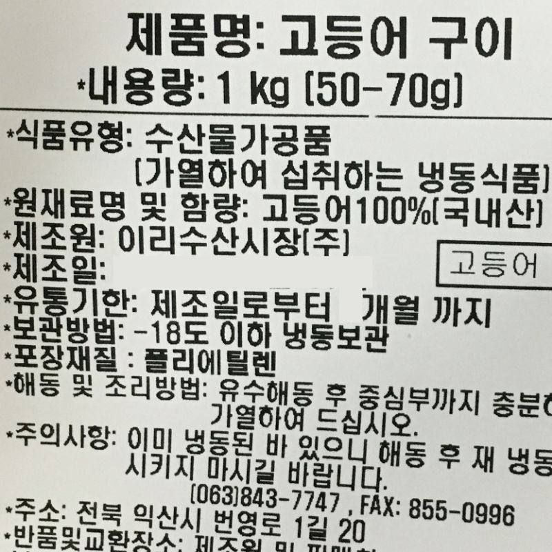 고등어(내장제거_50~70g/토막 구이용 KG)