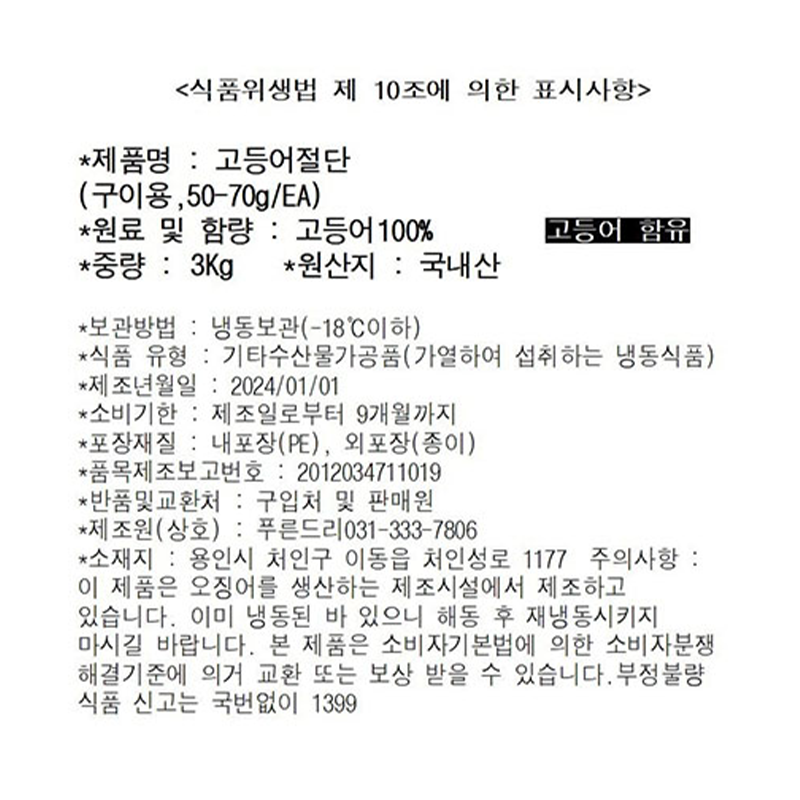 고등어(굿픽_내장제거_50~70g/토막 구이용 3Kg/BOX)