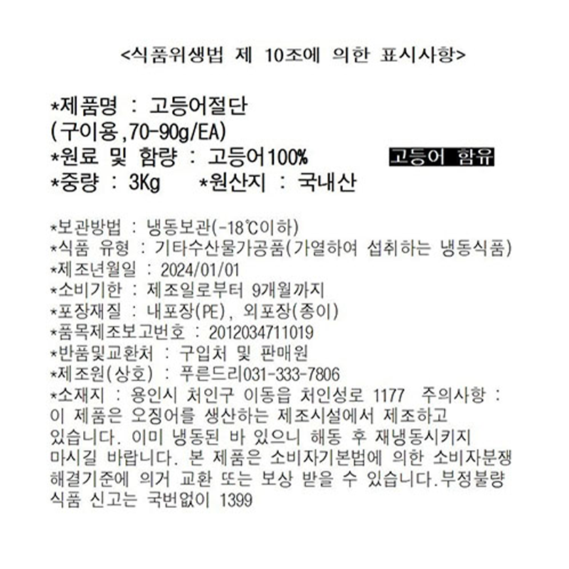 고등어(굿픽_내장제거_70~90g/토막 구이용 3Kg/BOX)