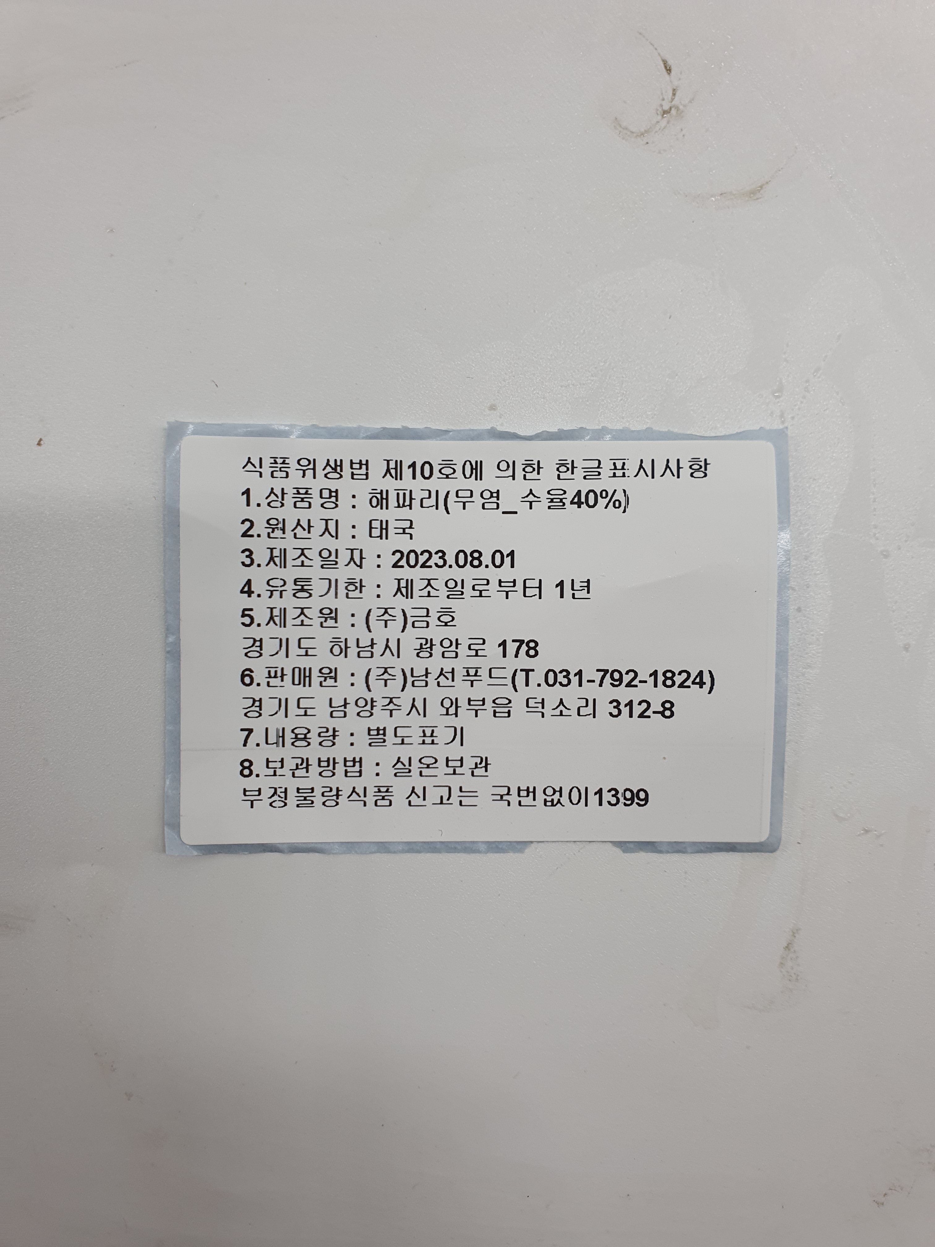 태화 노란해파리(무염_수율40% 10Kg/BOX)