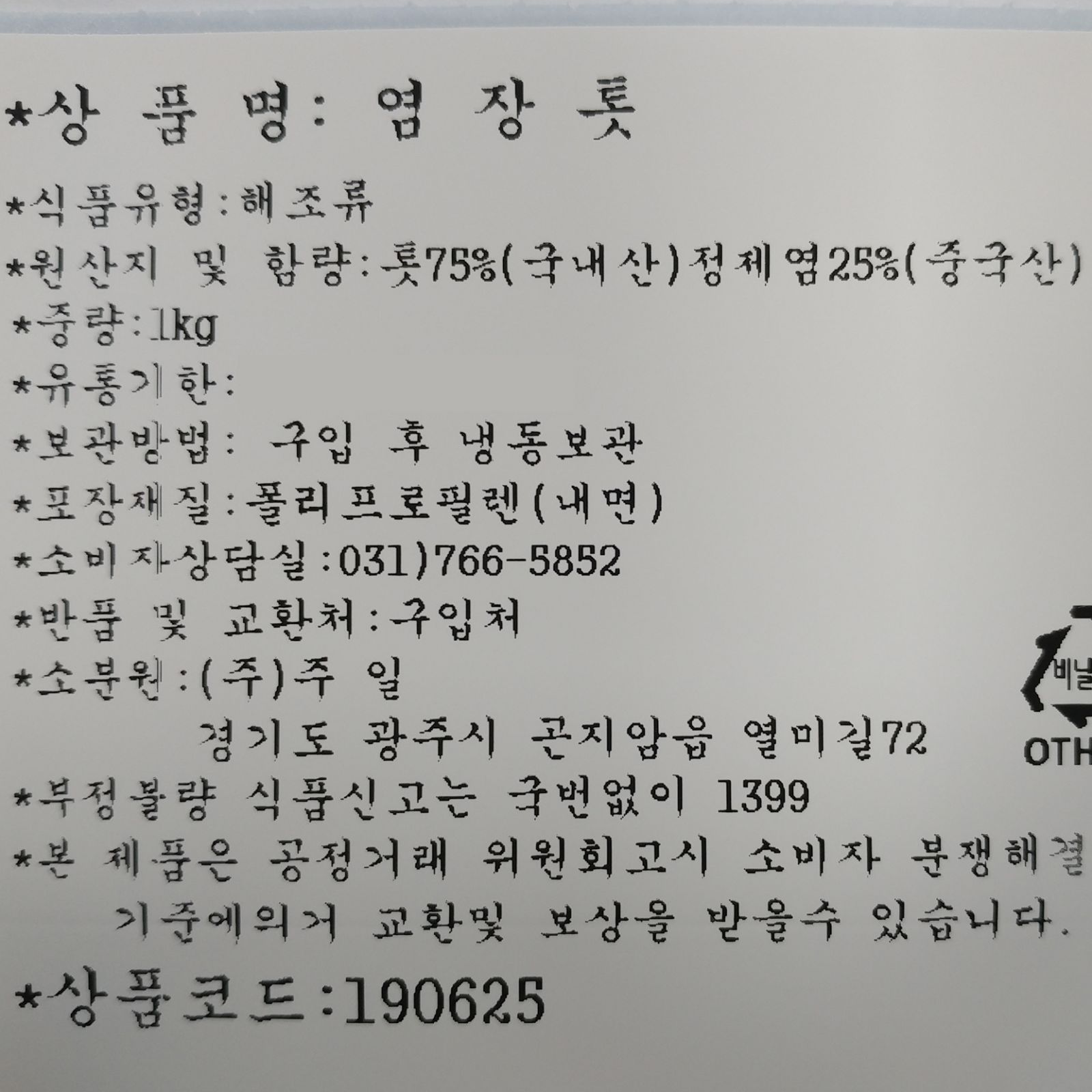 본 제품은 제품입고일별 소비기한 또는 품질유지기한이 상이하므로, 필요시 고객센터로 문의하여 주십시오. 제조일로부터 30일 까지