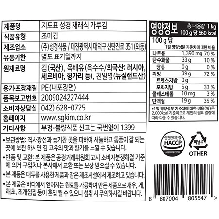 성경맛지도 조미김가루(1Kg/EA) 이미지