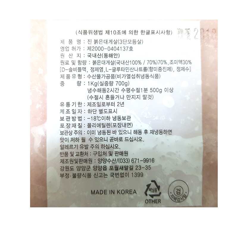 홍게다리살(3단_수율70% 1Kg/EA) 이미지