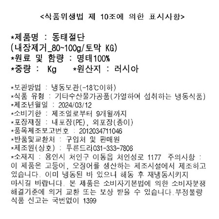 동태(내장제거_80~100g/토막 KG) 이미지