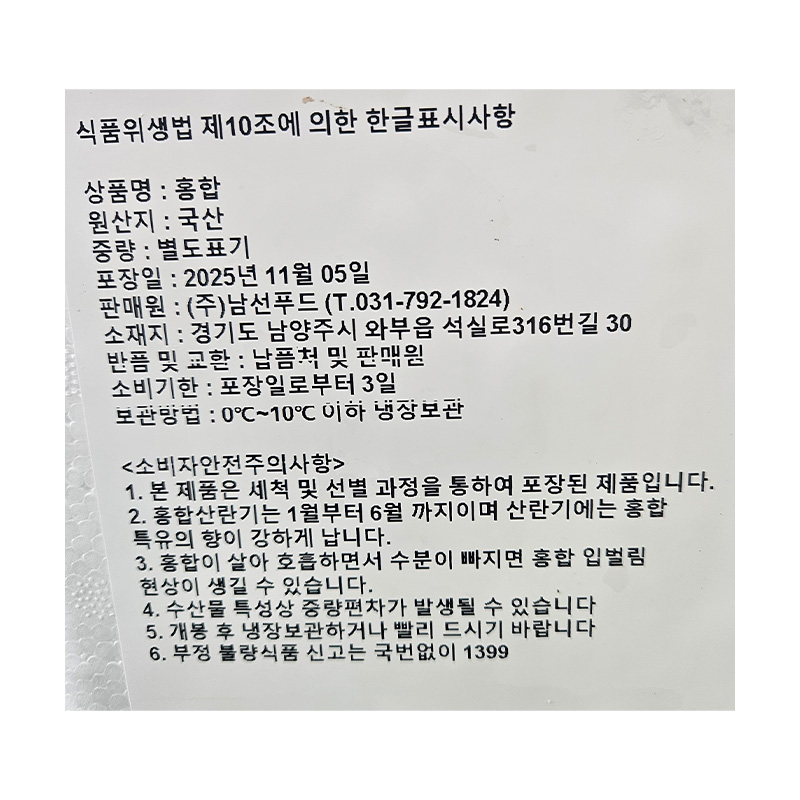 본 제품은 제품입고일별 소비기한 또는 품질유지기한이 상이하므로, 필요시 고객센터로 문의하여 주십시오. 제조일로부터 3일 까지
