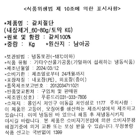 갈치(내장제거_40~60g/토막 KG) 이미지