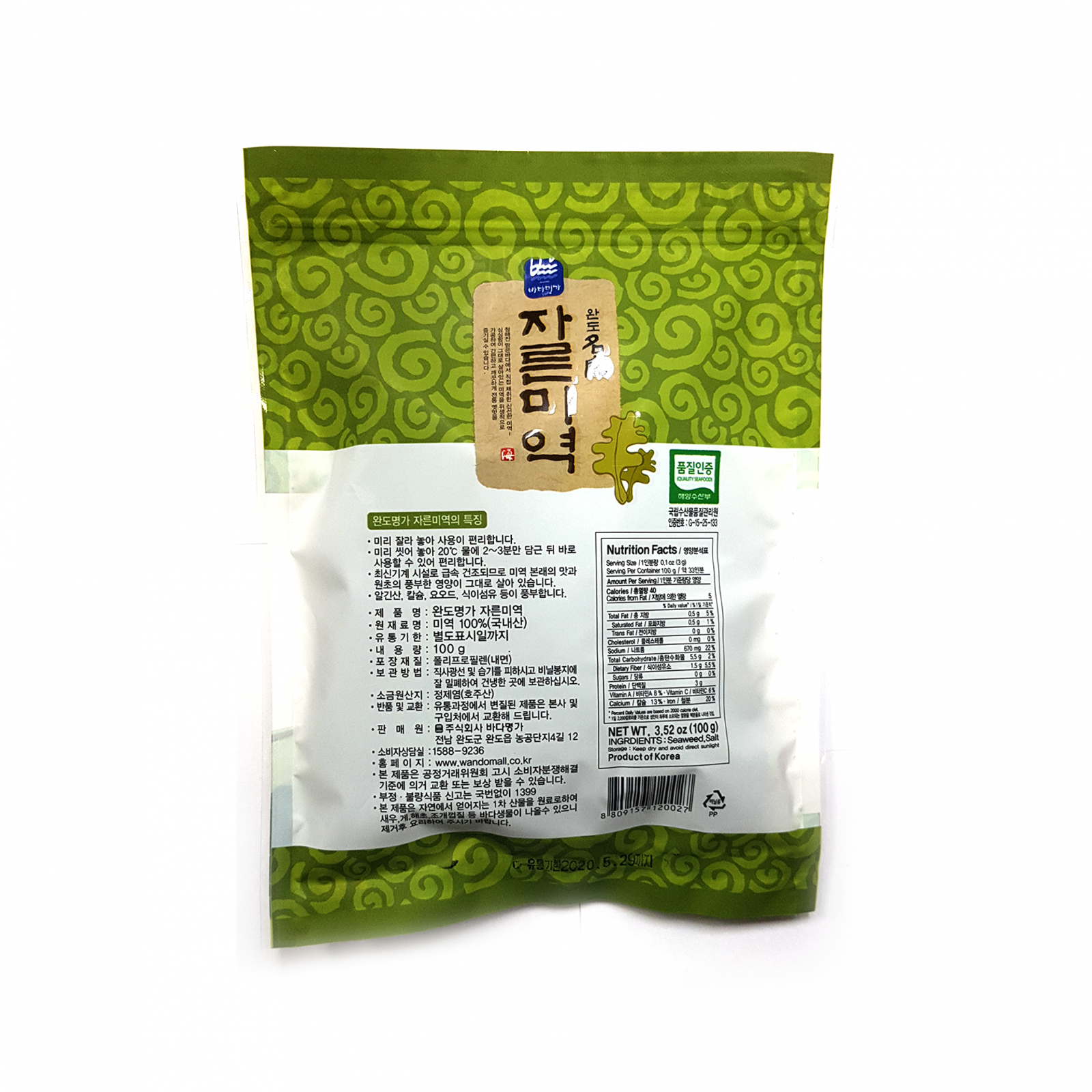 완도명가 자른미역(지퍼백_전남도지사인증 100g/EA)