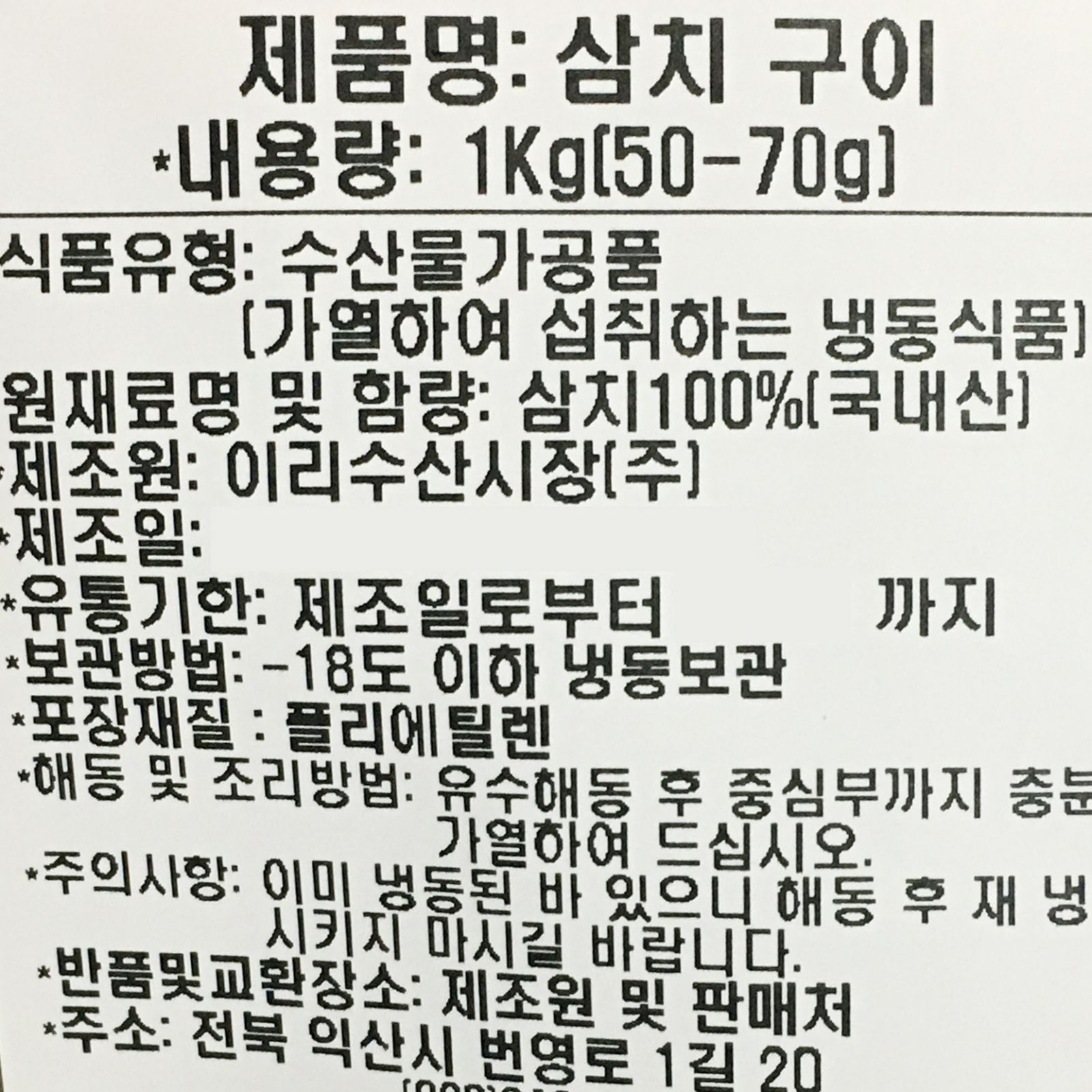 삼치(내장미제거_50-70g/토막 구이용 KG)