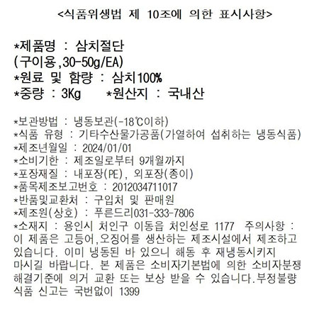 삼치(굿픽_내장제거_30~50g/토막 구이용 3Kg/BOX)