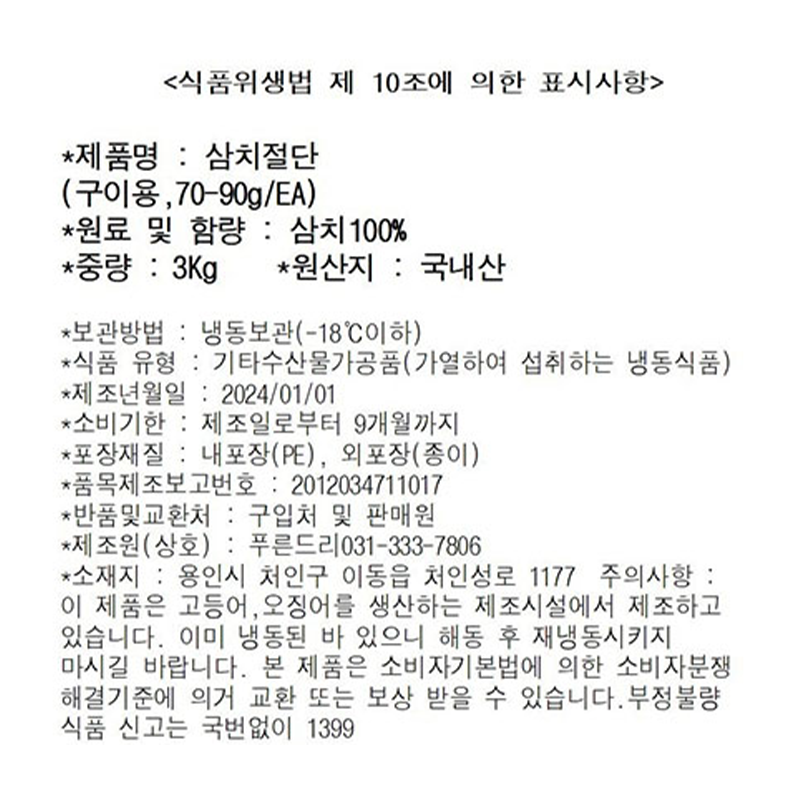 삼치(굿픽_내장제거_70~90g/토막 구이용 3Kg/BOX)