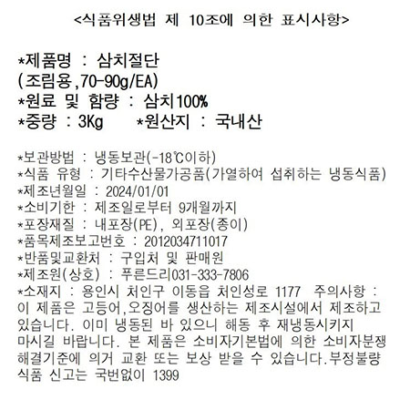 삼치(굿픽_내장제거_70~90g/토막 조림용 3Kg/BOX)