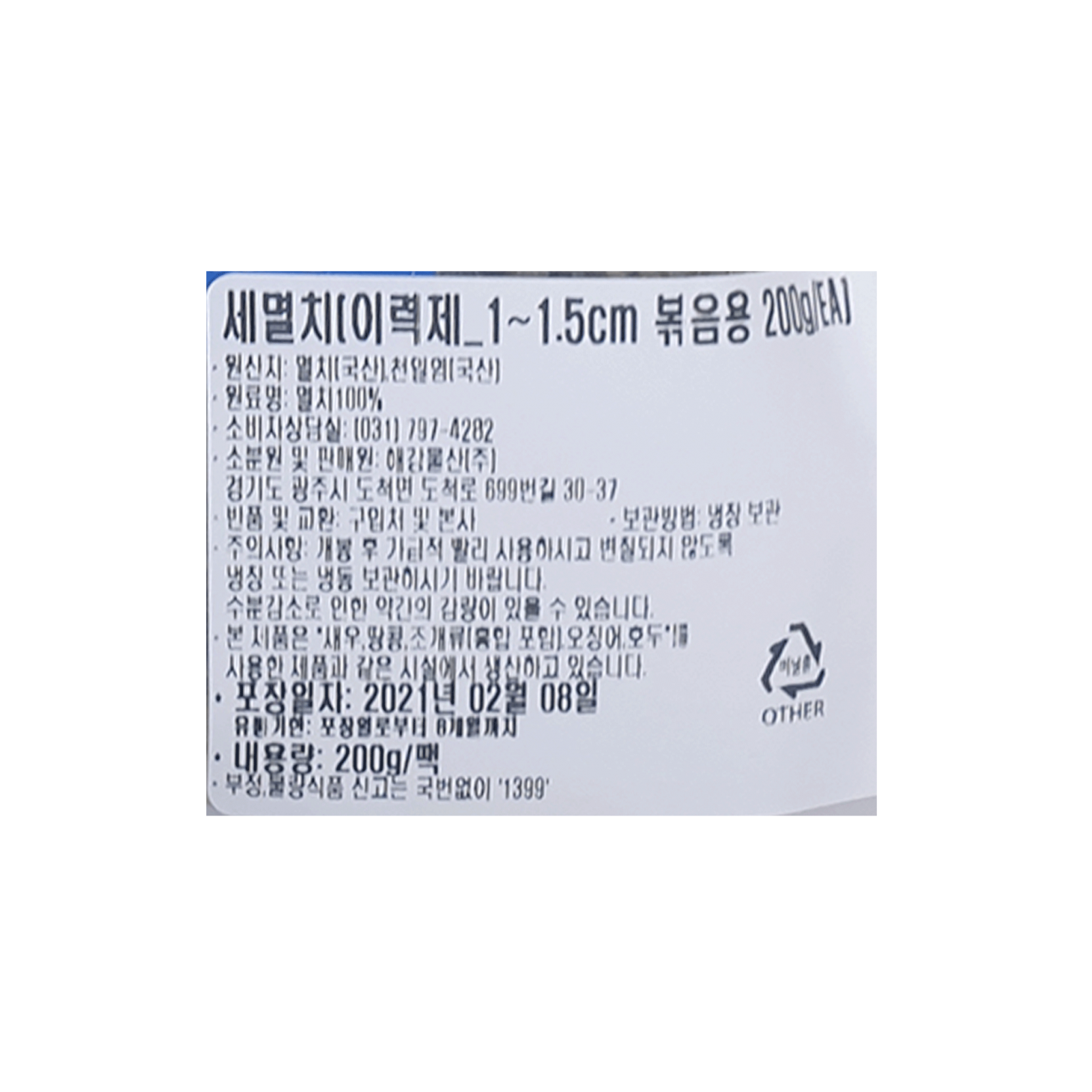 세멸치(이력추적_1~1.5cm 볶음용 200g/EA) 이미지