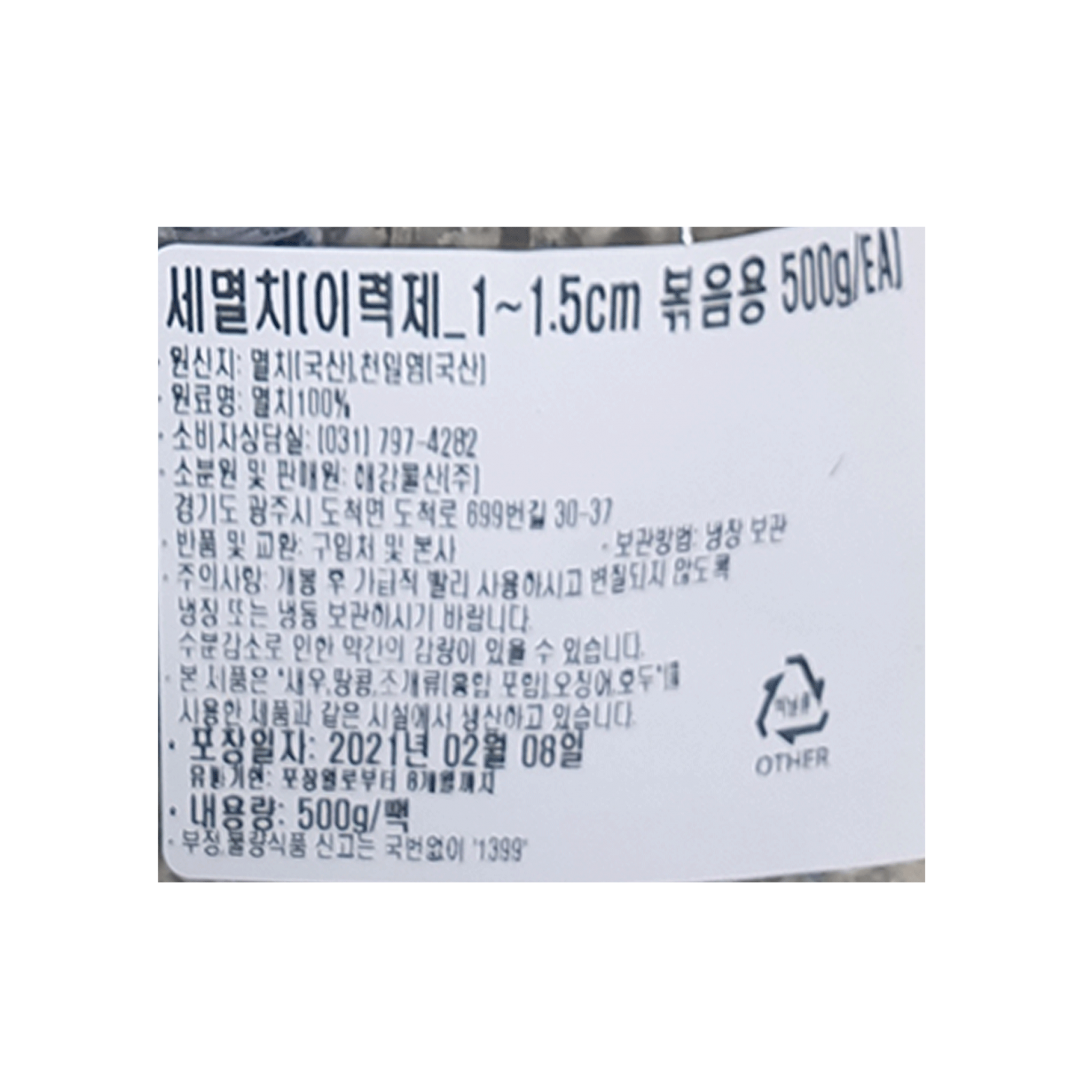 세멸치(이력추적_1~1.5cm 볶음용 500g/EA)