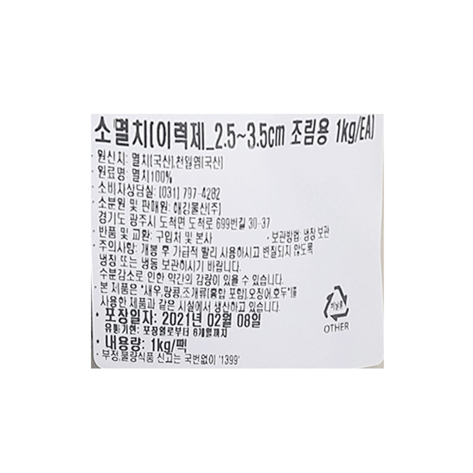 소멸치(이력추적_2.5~3.5cm 조림용 1Kg/EA)