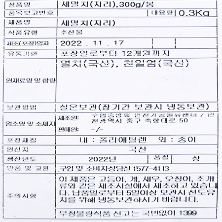수협어기여찬 세멸치(지리 300g/EA) 이미지