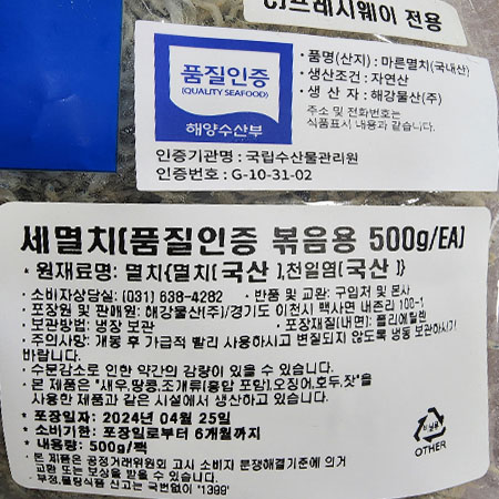 세멸치(품질인증 볶음용 500g/EA) 이미지