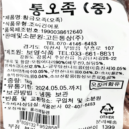 가문어통다리(중_12~14미 1Kg/EA) 이미지