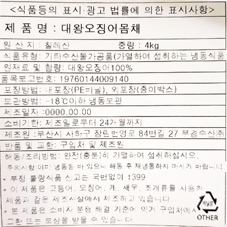 대왕오징어몸채(벌크 4Kg/BOX) 이미지