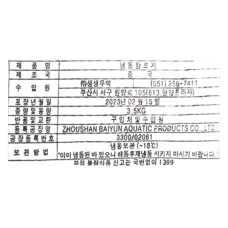참조기(50~54미_60~70g/마리 3.5Kg/BOX)