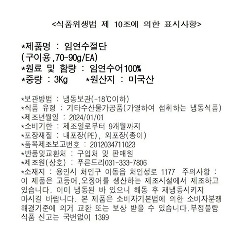 임연수(굿픽_내장제거_70~90g/토막 구이용 3Kg/BOX)