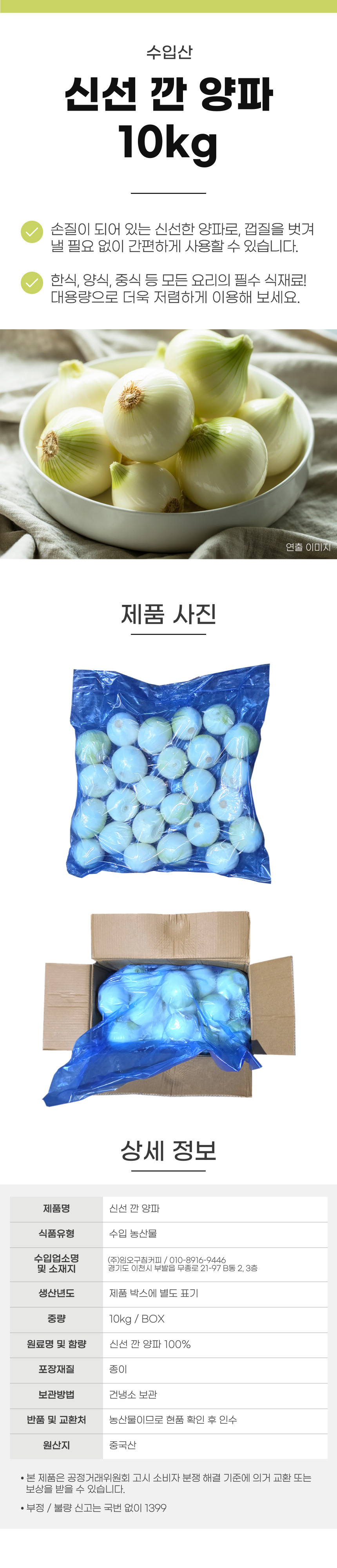 깐 양파 10kg (수입산) 1BOX 깐양파