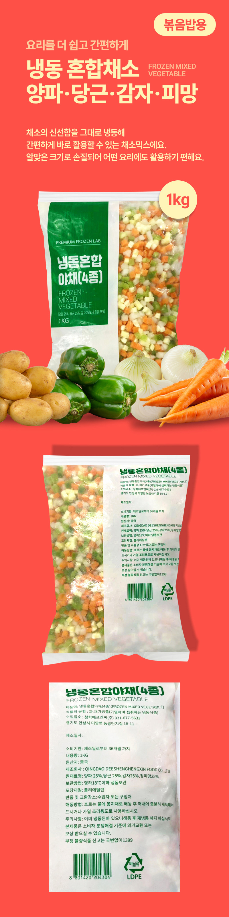 EasyWay냉동혼합채소(4종_감자+당근+양파+청피망 볶음밥용 1Kg/EA)