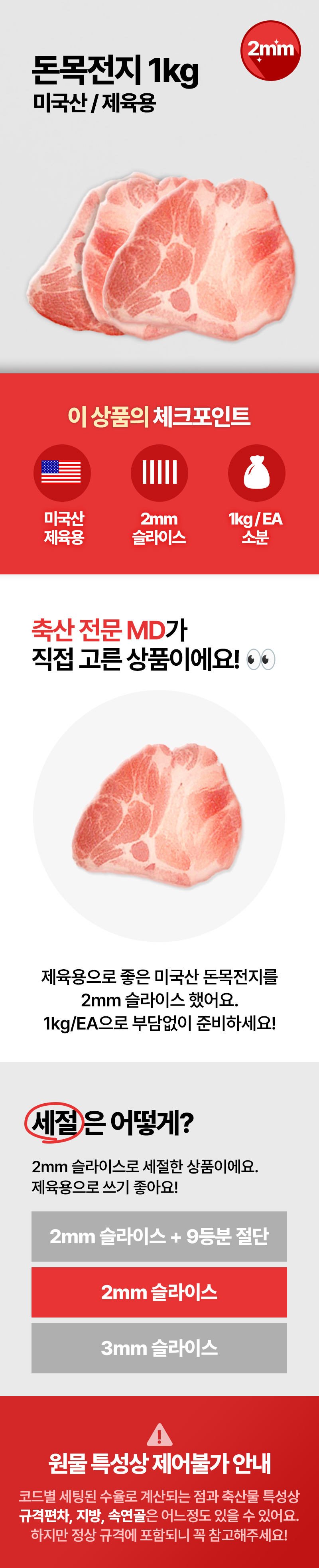 ♥정육특가♥ 제육용 미국산 돈목전지(2mm 슬라이스 1kg/EA)