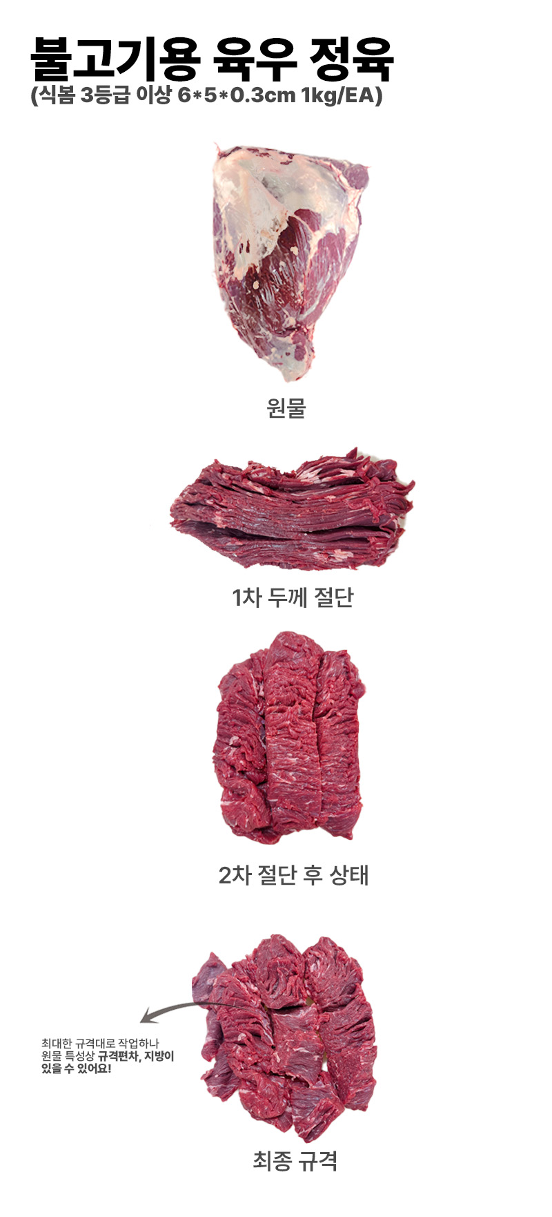 ♥정육특가♥ 불고기용 육우 정육(냉장 6*5*0.3cm 1kg/EA)