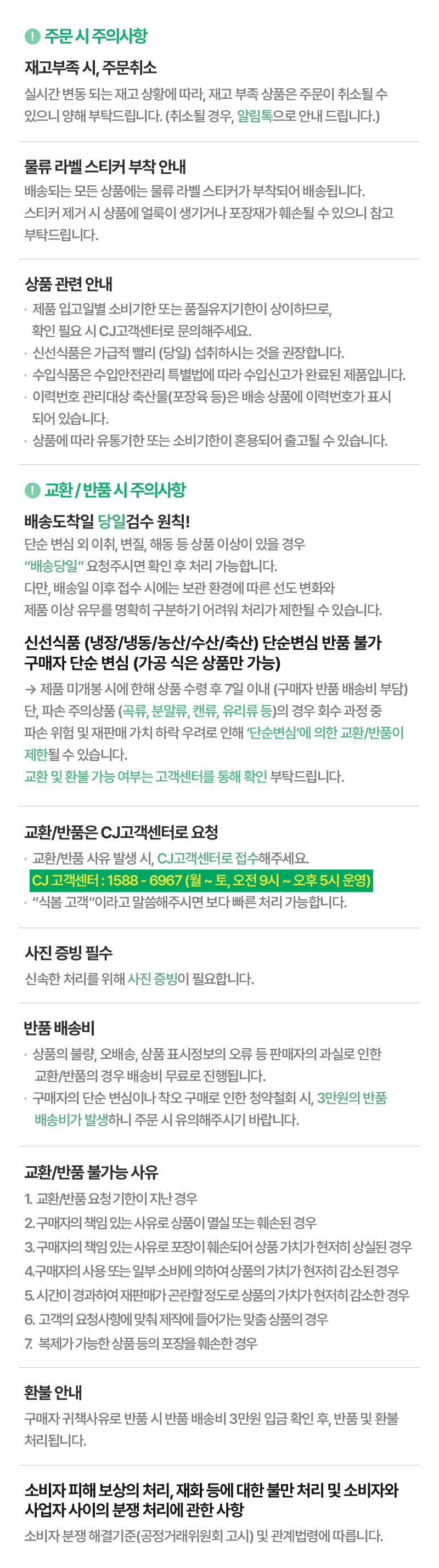 반품 및 교환 정보
