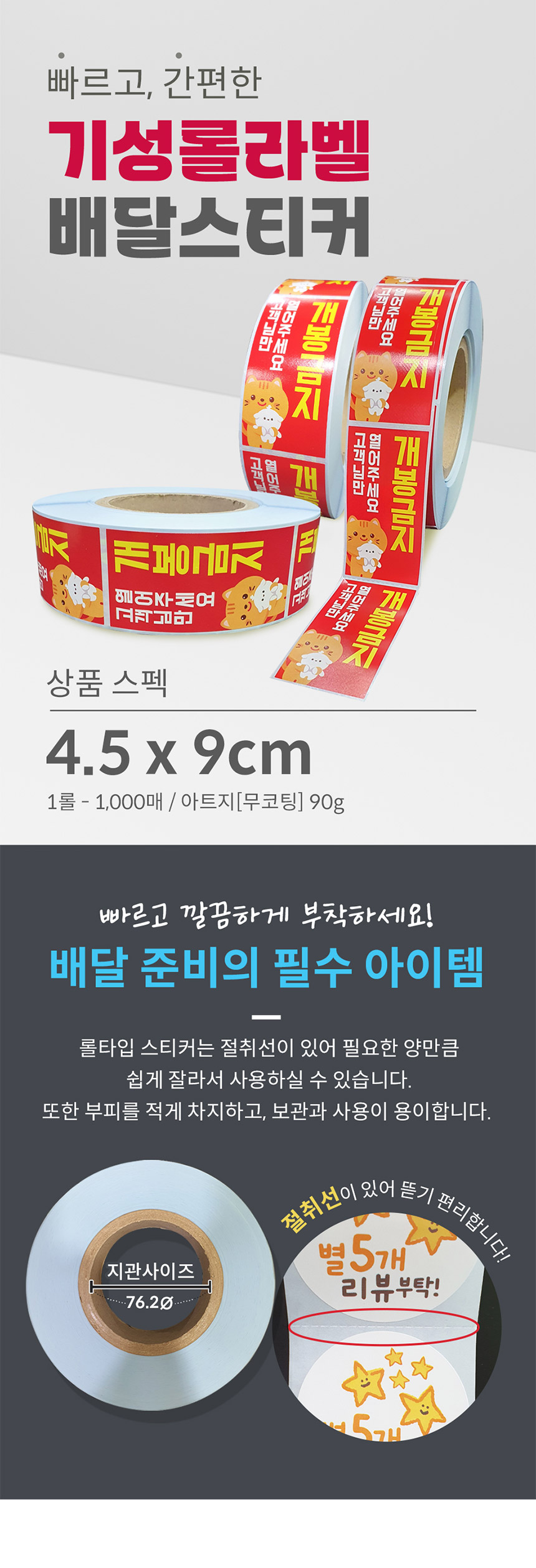 롤 배달스티커 보안(안심) 10종 (개봉금지B) 1000매 이미지